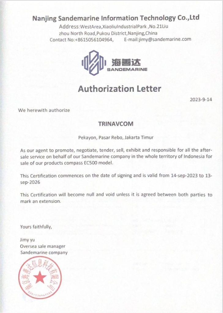 Tri Navcom telah menjadi Distributor Resmi untuk penjualan Electronic Satellite Compass Brand SANDEMARINE model EC500.